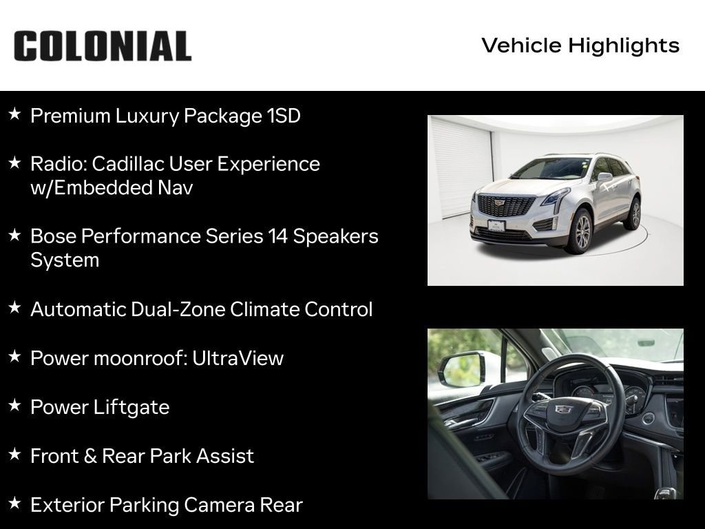 Crystal White Tricoat AWD 9-Speed Automatic 3.6L V6 DI VVT 2021 Cadillac XT5 Premium Luxury Price excludes tax, registration, and dealer conveyance fee of $799.