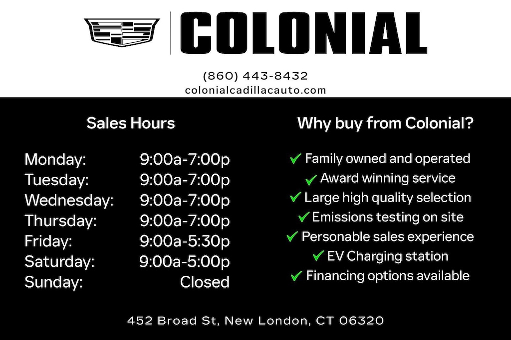 Colonial Cadillac is dedicated to your satisfaction before, during, and after your purchase. We'll go the extra mile to take care of you.