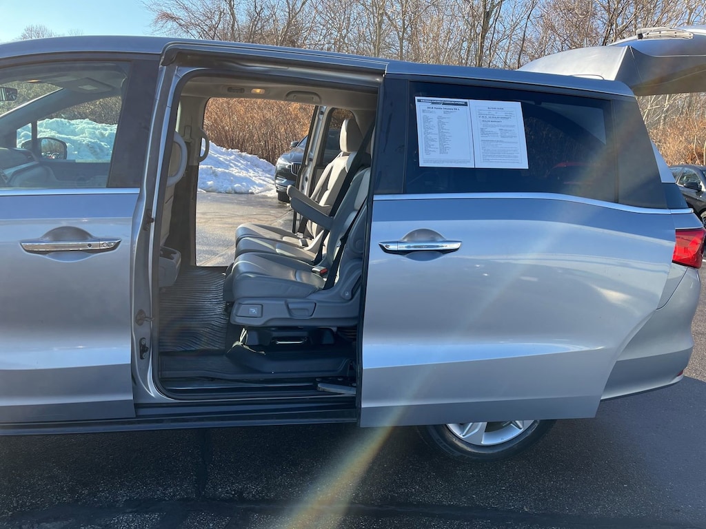 CARFAX One-Owner. Power Liftgate, Power moonroof. ''SIGNATURE CERTIFIED POWERED BY ALLSTATE! INCLUDES A RIGOROUS 70 POINT VEHICLE SAFETY INSPECTION AND A COMPLIMENTARY 6 MONTH - 6,000 MILES LIMITED WARRANTY''Lunar Silver Metallic FWD 9-Speed Automatic 3.5L V6 SOHC i-VTEC 24V 2018 Honda Odyssey EX-L Price excludes tax, registration, and dealer conveyance fee of $799.