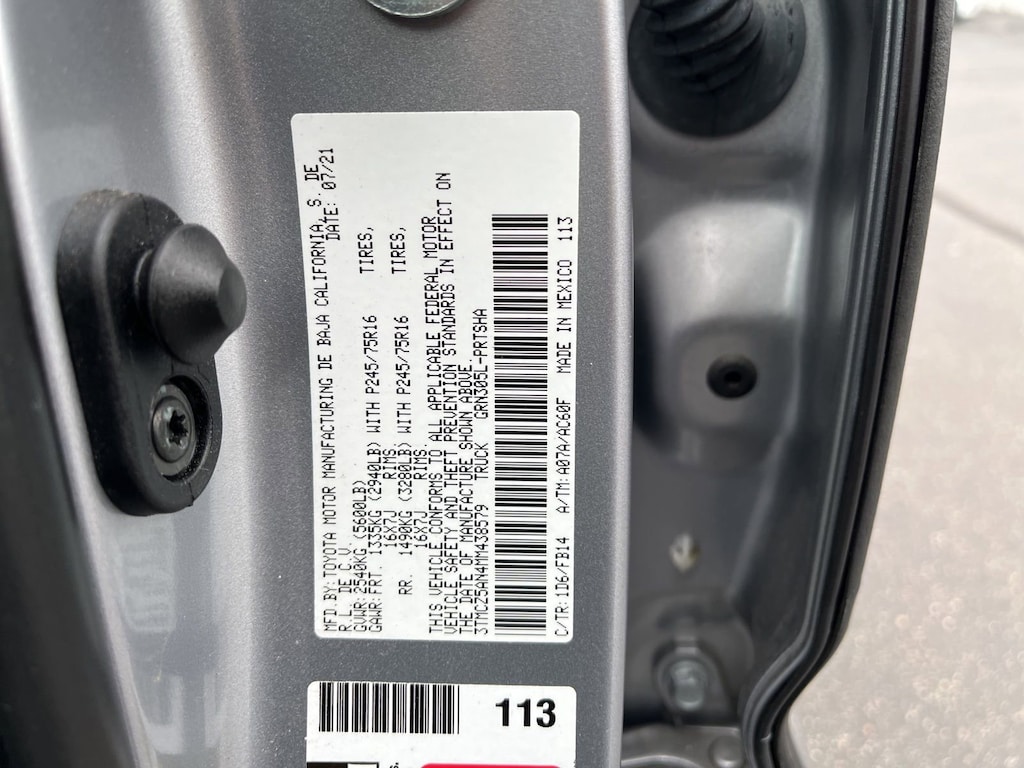 Silver Sky Metallic 4WD 6-Speed Automatic 3.5L V6 PDI DOHC 24V LEV3-ULEV70 278hp 2021 Toyota Tacoma SR V6 Price excludes tax, registration, and dealer conveyance fee of $799.